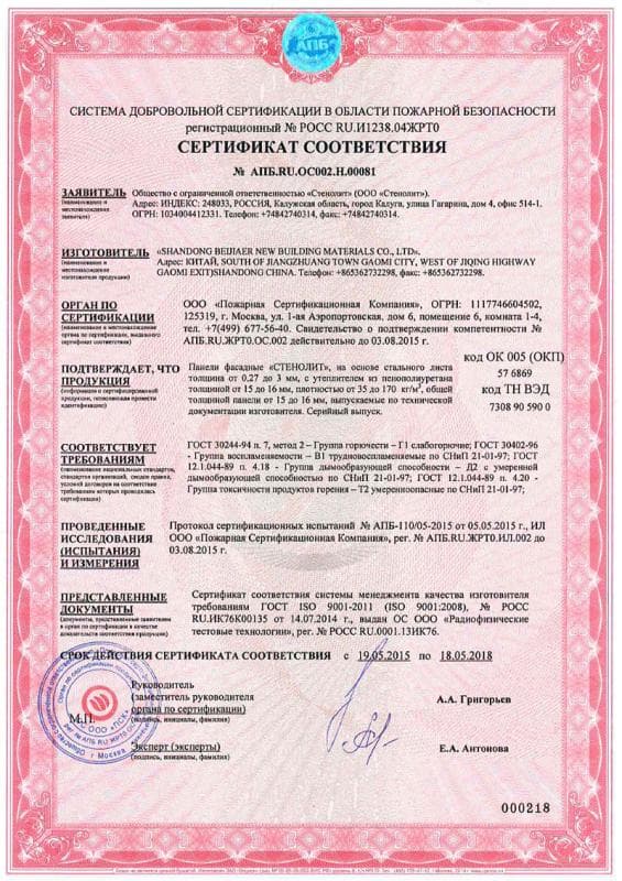 Подтвержденное сертификатами и действующими ГОСТ